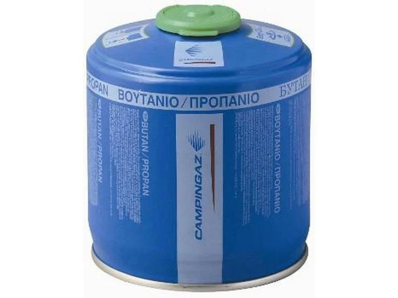 Mengsel van butaan en propaan (80/20). Een klein cartouche waar meer gas in kan.
