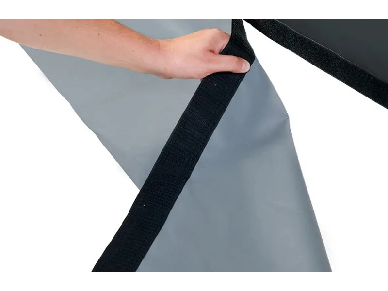 Zijwanden: beide panelen zijn neerrolbaar, uitritsbaar en voorzien van een deur