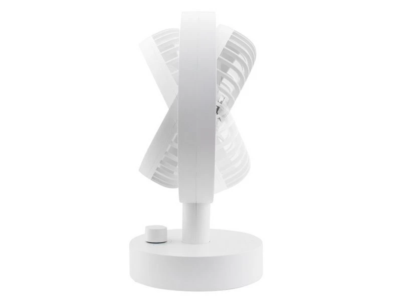 De ventilator kan omhoog en omlaag worden versteld in een hoek van 70?. Traploos regelbare ventilatorsnelheid door aan de knop te draaien. Oscillatiefunctie kan worden in- / uitgeschakeld. De ingebouwde oplaadbare polymeerbatterij van 4000 mAh biedt de ventilator 9 uur werktijd (afhankelijk van de snelheid). De mat afgewerkte coating geeft de ventilator een luxe uitstraling!