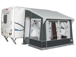 Scheidingswand voor Annex 220. De scheidingswand wordt in de opening tussen voortent en uitbouw gemonteerd.