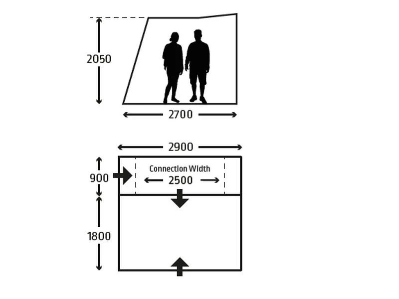 Ideaal voor weekendavonturiers die een snel onderdak nodig hebben. De Trip kan gegarandeerd snel worden opgezet en afgebroken, zelfs als u alleen rondtrekt. Compleet met een inklikbaar waterdicht grondzeil, twee ramen over de volledige hoogte met rolluiken en een grote voordeur. De verbindingstunnel heeft een handige zijdeur die eenvoudige toegang biedt.